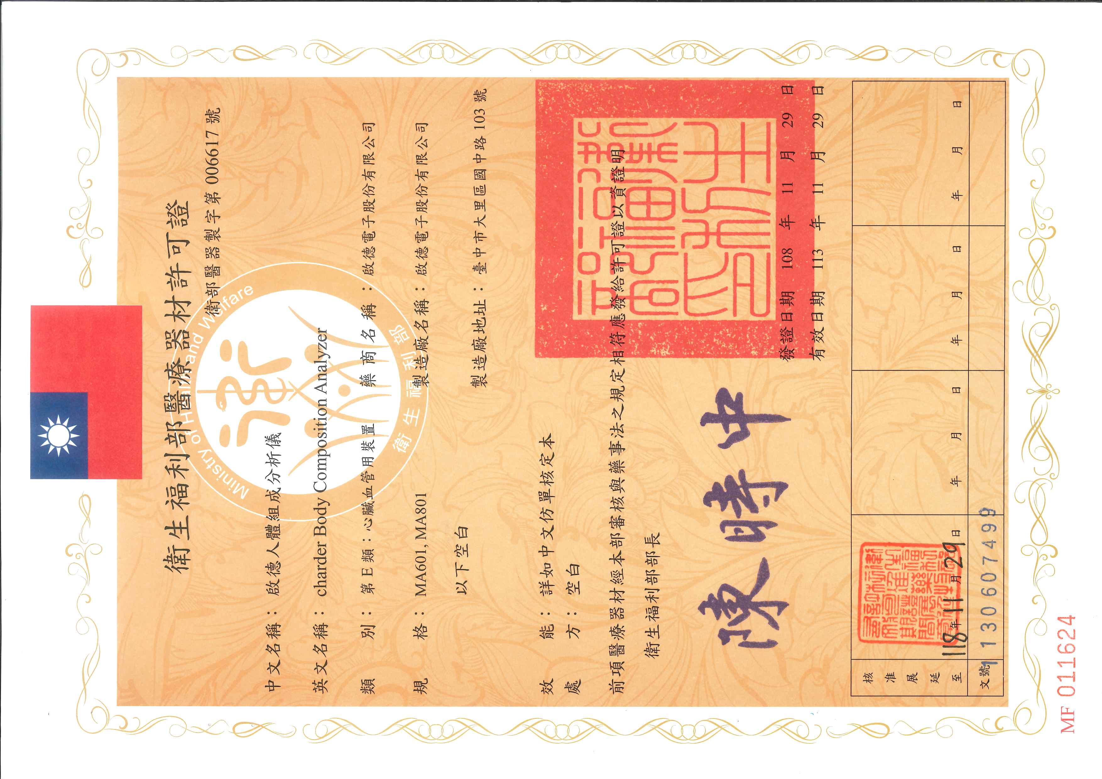 衛部醫器製字第006617號